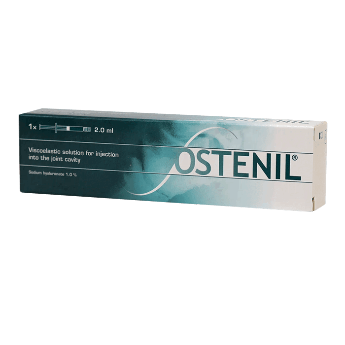 Гиалуроновая кислота (ГК) является природным полимером, обеспечивающим вязкоупругие свойства синовиальной жидкости. В нормальном суставе она имеет высокую концентрацию на поверхностном слое суставного хряща, а также на поверхностных слоях синовиальной мембраны. В синовиальной жидкости ГК выступает как смазка и поглотитель удара, энергонакапливающий агент между находящимися друг против друга хрящами, полупроницаемый барьер, регулирующий метаболические обмены между хрящом и синовиальной жидкостью, агент, управляющий движением клеток и вязкоупругий экран вокруг синовиоцитов и прилегающих нервных окончаний.Здоровый синовиальный сустав находится в состоянии равновесия или гомеостаза. ГК постоянно перемещается в полости сустава, но её концентрация и профиль молекулярного веса остаются постоянными. Остенил содержит особую фракцию гиалуроната натрия высокой очистки, получаемую путем бактериальной ферментации. Продукт не содержит животных белков, что снижает риск аллергической реакции, а узкий диапазон молекулярного веса помогает обеспечить отсутствие легких, вызывающих воспаление, фрагментов гиалуроновой кислоты.