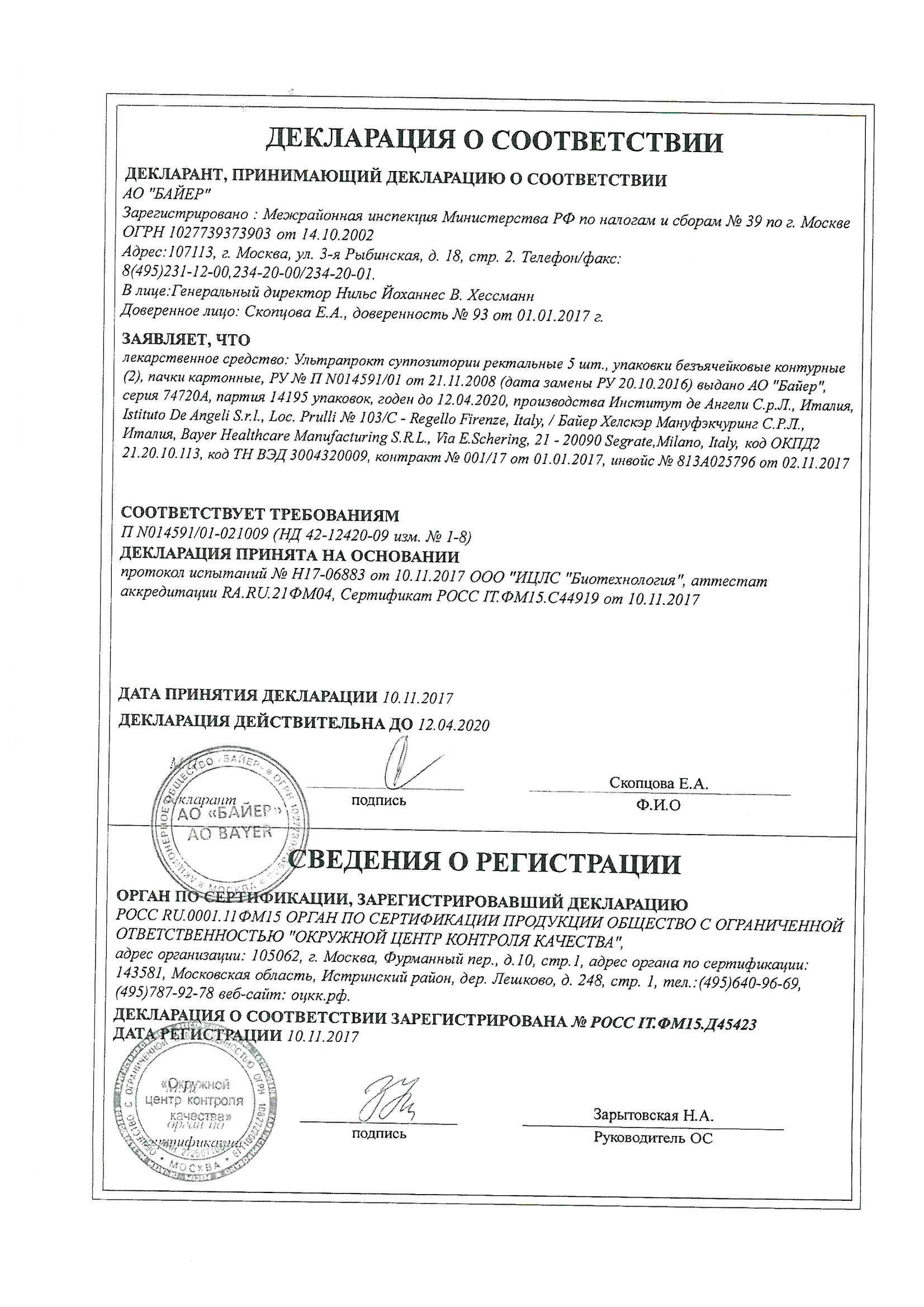 При наличии грибковых инфекций в дополнение к Ультрапрокту требуется проведение соответствующей противогрибковой терапии.